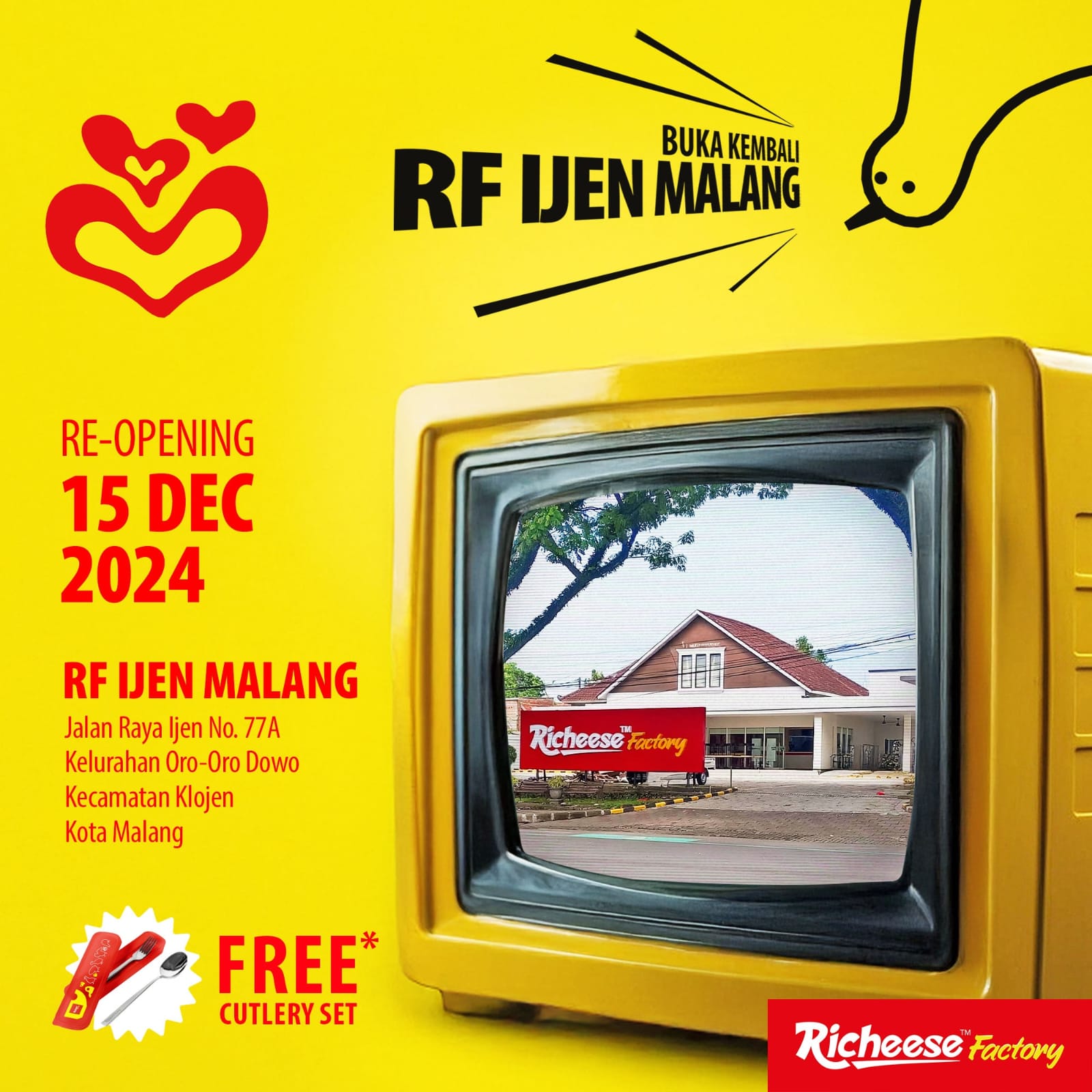 Cheesemate, yang dinanti-nanti kini sudah hadir kembali! Richeese Factory Ijen Malang sudah bisa kamu kunjungi lagi lho 🥳
