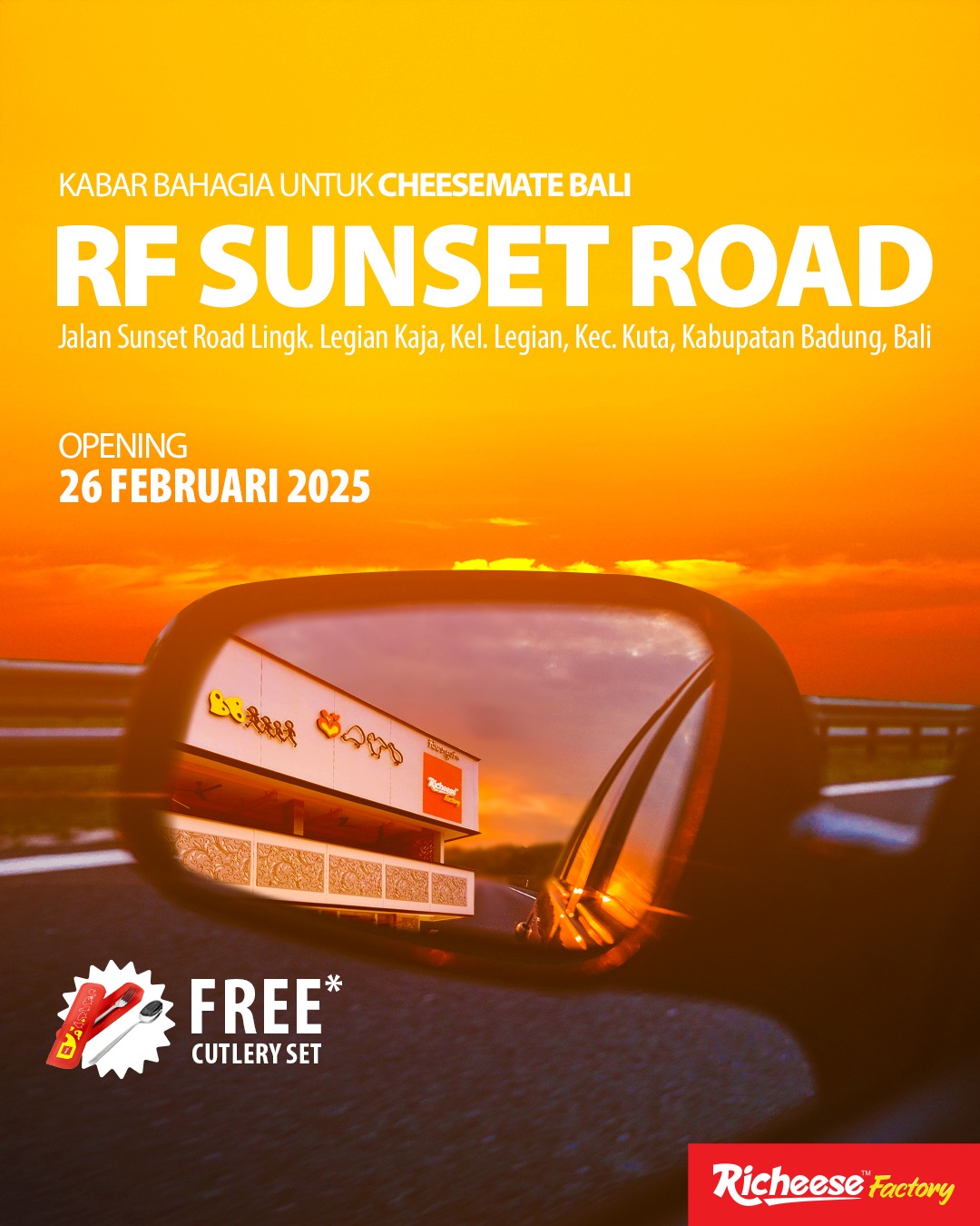 Hi, Cheesemate Bali! Bikin harimu lebih lengkap dengan datang ke Richeese Factory Sunset Road yang baru buka 🤩✨