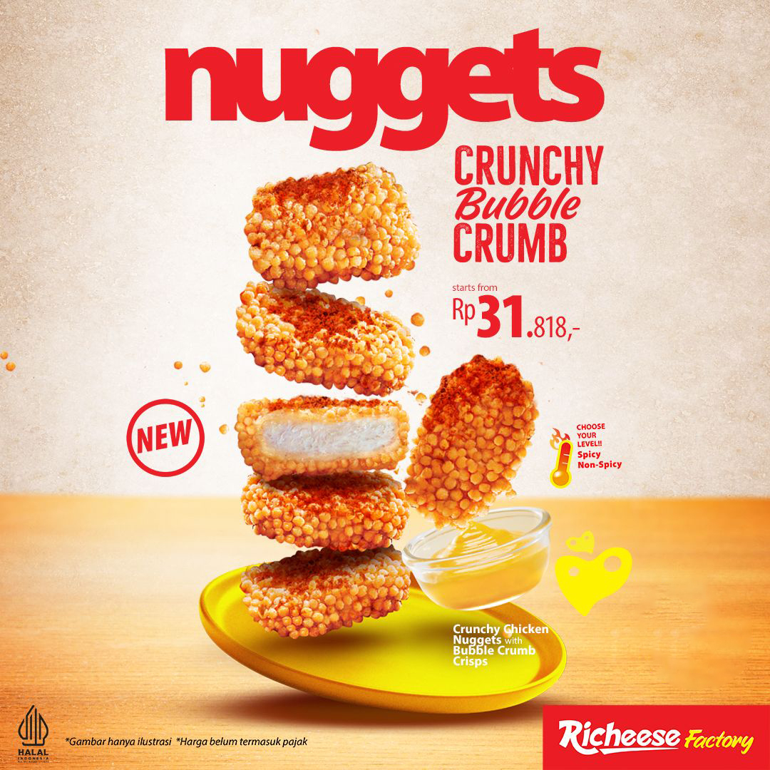 Kini di setiap ceritamu, pasti ada CRUNCHY BUBBLE CRUMB Nugget di Richeese Factory 🤗