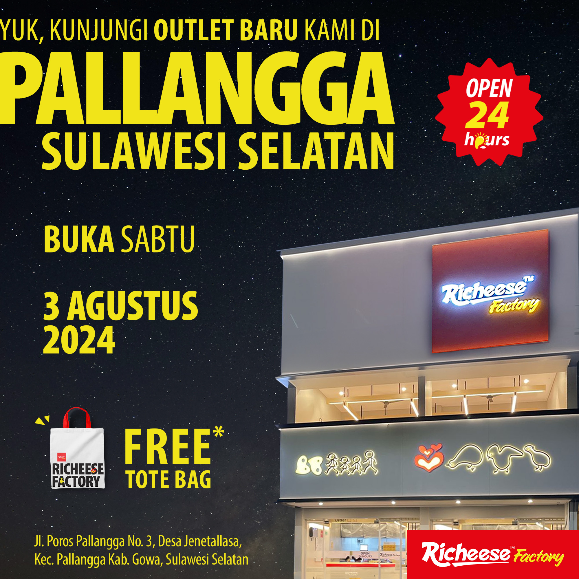 Panggilan untuk semua Cheesemate di Pallangga! Outlet Richeese Factory Pallangga sudah buka 🤩🍗