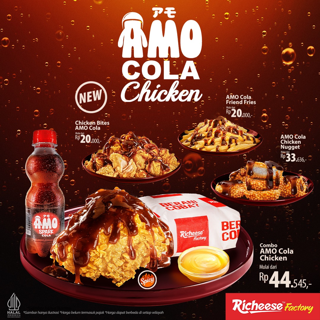 Ayo Cheesemate, kamu harus jadi yang pertama buat cobain menu Amo Cola! Jangan lupa post di sosial media-mu dan mention @richeese_factory yaa! 😉✨