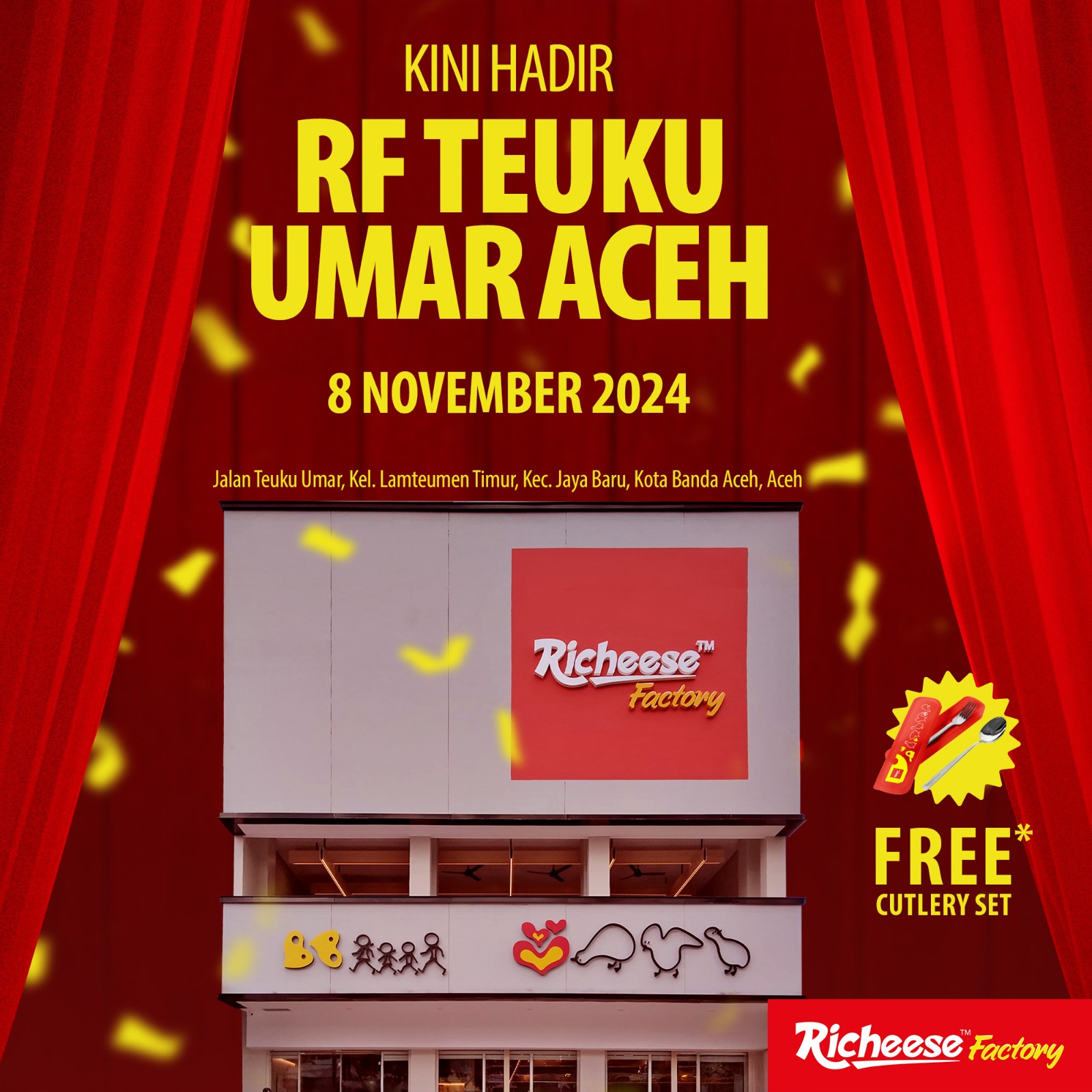 Hi, Cheesemate yang ada di Aceh! Sekarang kamu bisa order menu favoritmu di Richeese Factory Teuku Umar Aceh! 🥳🙌