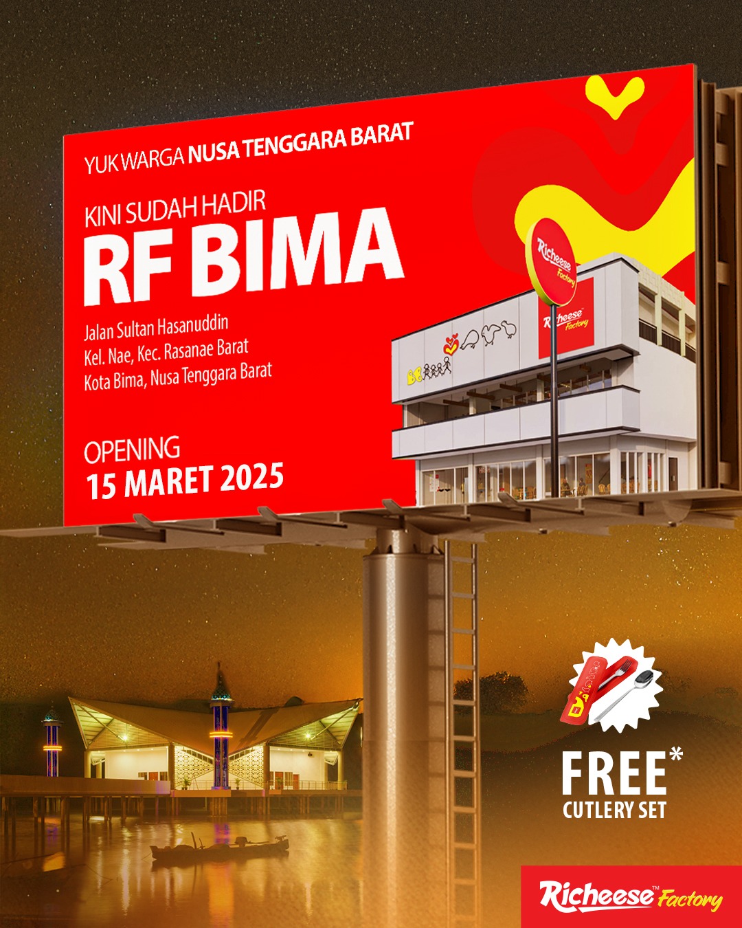 Hallo Cheesemate Bima, Nusa Tenggara Barat! Sudah tahu mau berbuka puasa di mana? Yuk, pesan menu Richeese Factory favorit-mu di Richeese Factory Bima mumpung baru buka nih Cheesemate 🤩