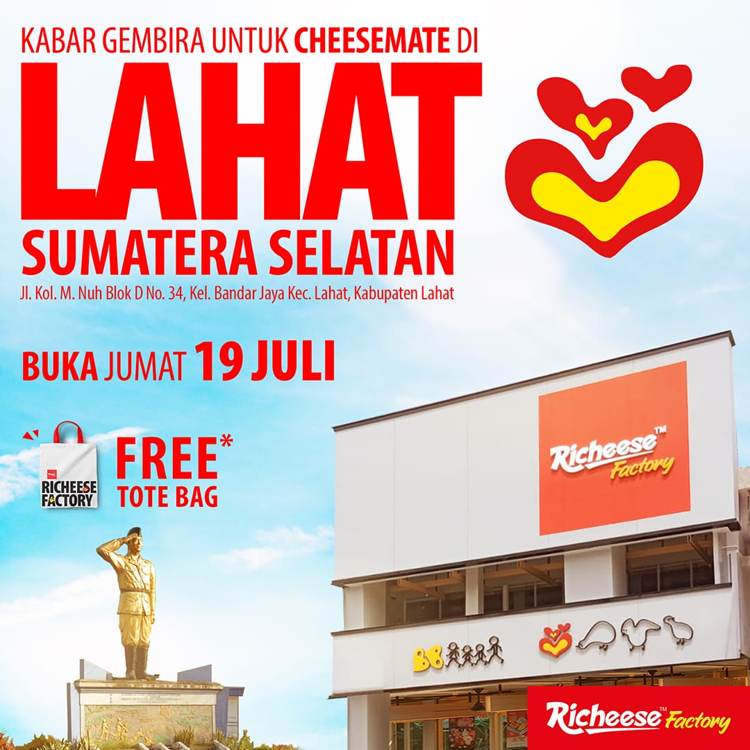 Cheesemate yang tinggal di Kota Lahat, ada kabar gembira untu kalian! Sekarang, Richeese Factory Lahat sudah buka, lho! 🤩🍗