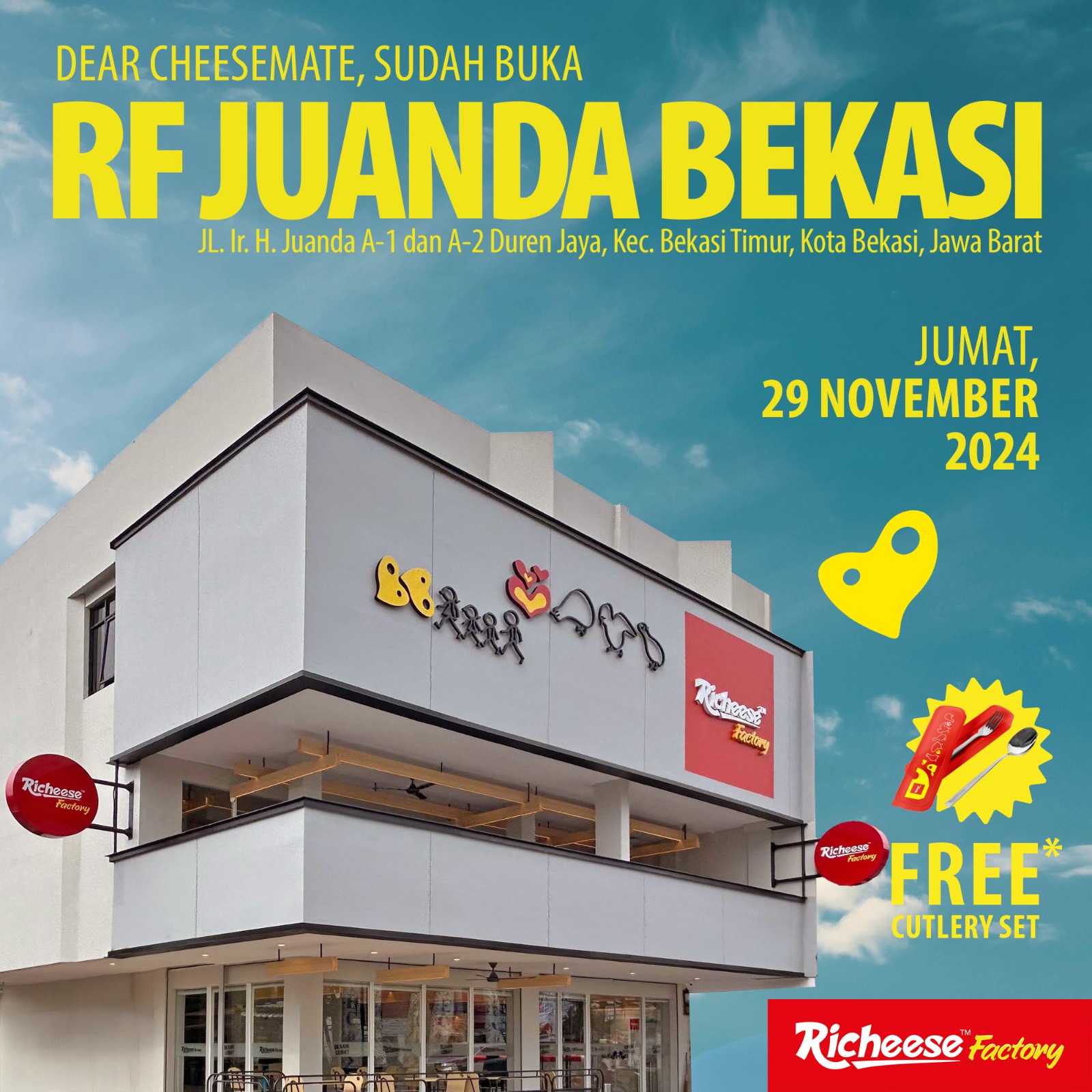 Teruntuk Cheesemate yang ada di Bekasi, sekarang kamu bisa order menu favoritmu di Richeese Factory Juanda Bekasi lho 🥳🙌