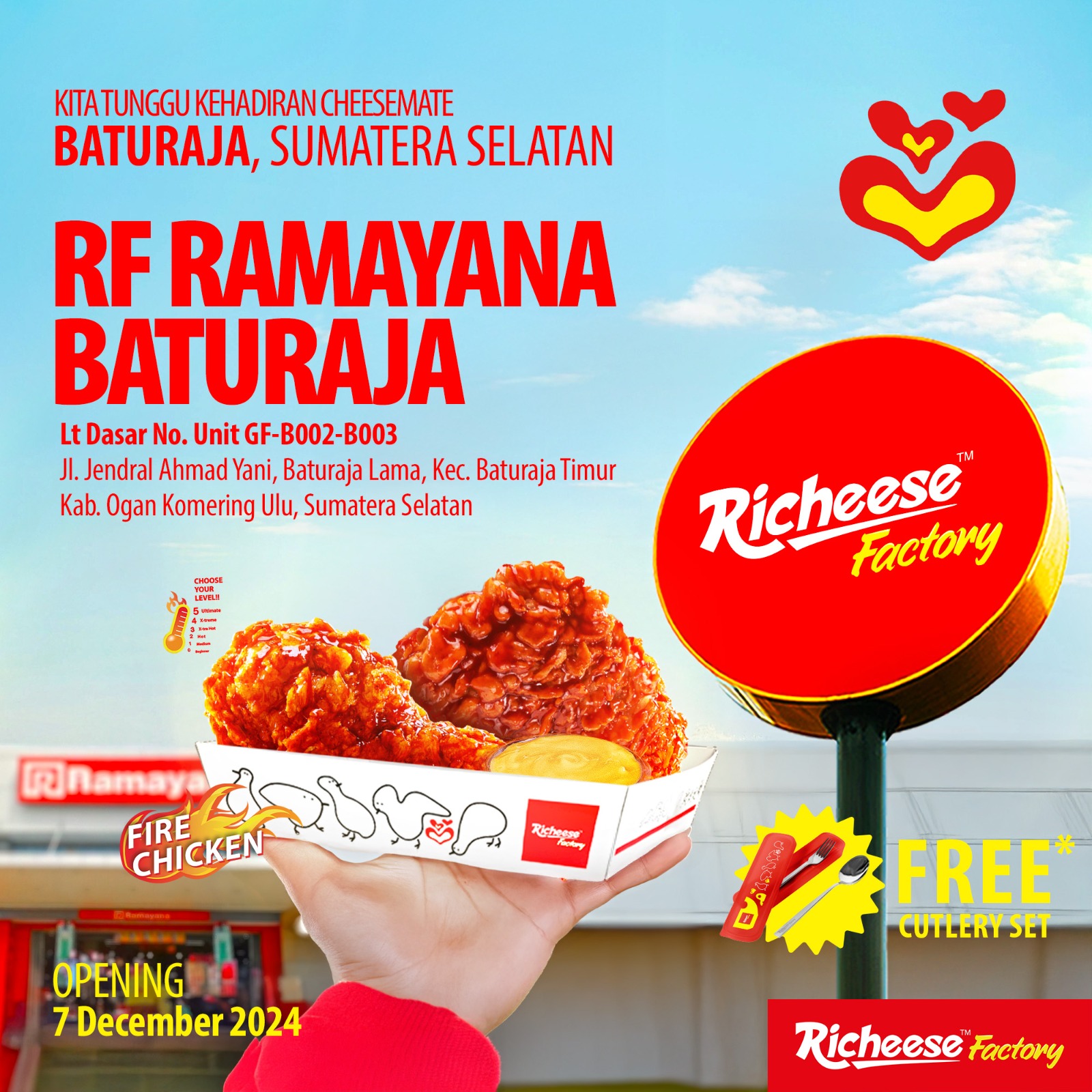 Cheesemate, ajak teman dan keluargamu ke Richeese Factory Ramayana Baturaja, karena sekarang sudah buka! 🥳